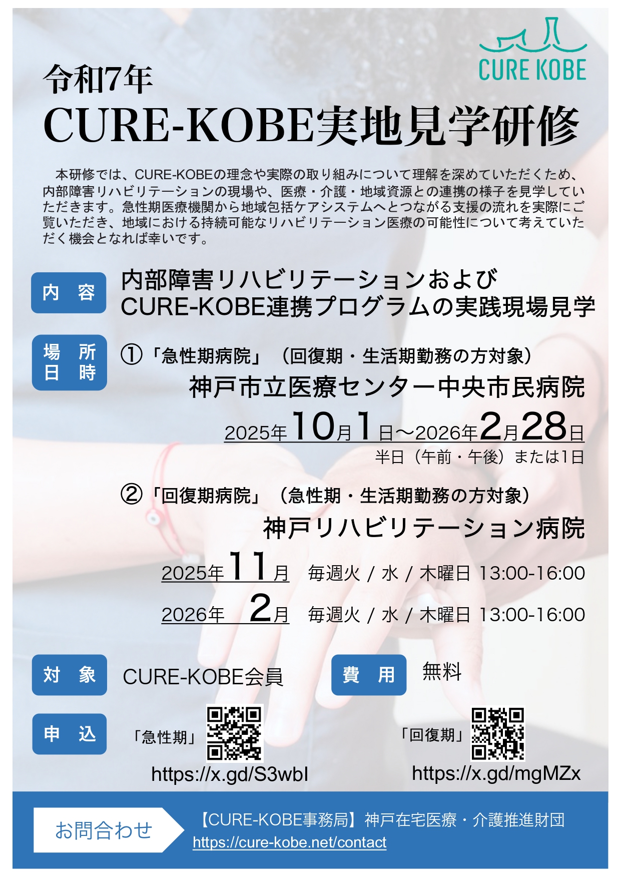 また、CURE-KOBEの運用実践を理解し、急性期・回復期・生活期における患者のシームレスな支援体制を強化するとともに、多職種間の連携を深めることを目指します。
